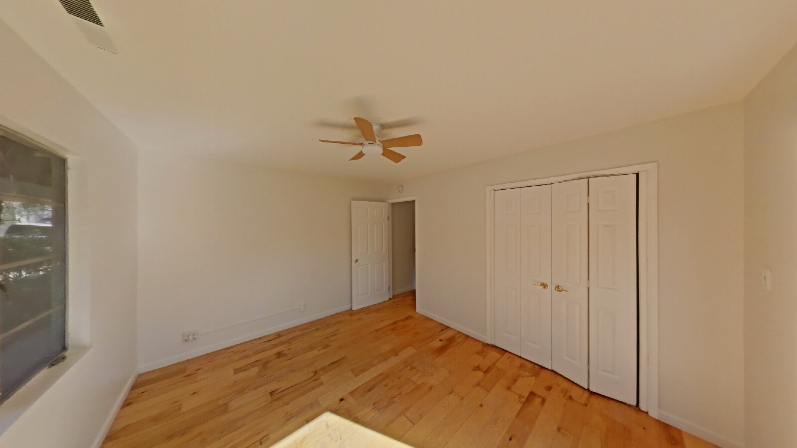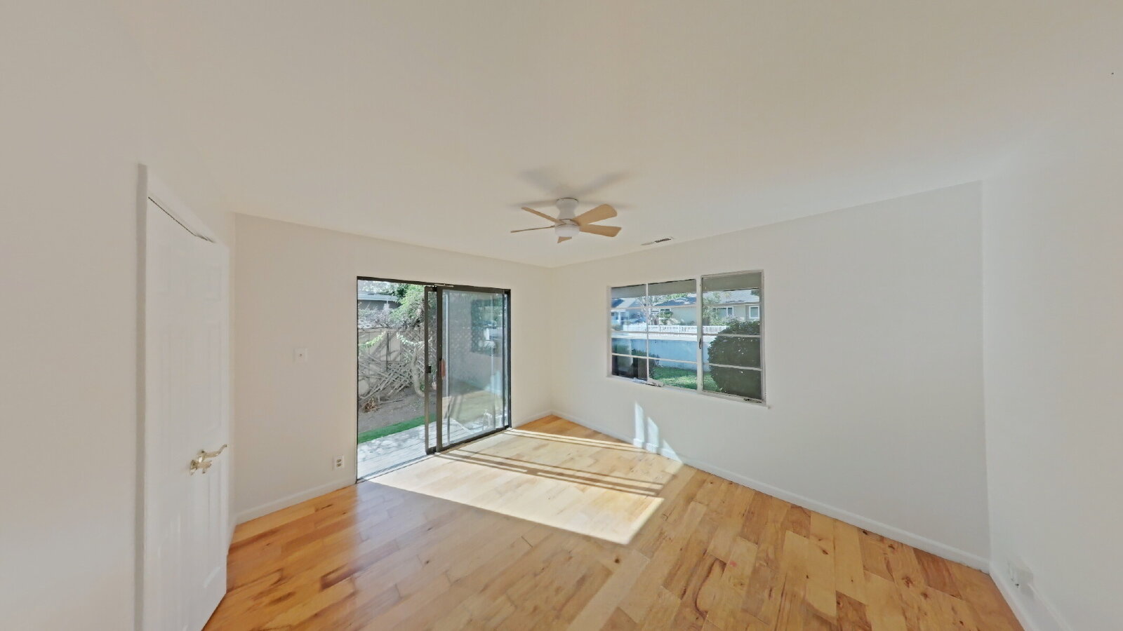 - Main bedroom with walk-in closet and ceiling fan